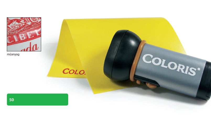 Az 50-es típusszámú, alacsony viszkozitású, gyorsan száradó bélyegzőfestéket műanyagok bélyegzésére fejlesztették ki. A lenyomat rugalmas és gyorsan maszatolás mentes lesz a legtöbb műanyag fólián.